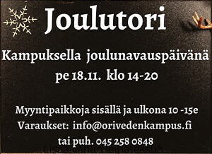 Joulutori Oriveden Joulunavauspäivänä, pe 18.11. klo 14-20 OrivedenKampus