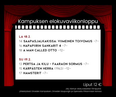 Elokuvat Klemettiin tuo Kiertue-elokuvateatteri Filmipyörä. Leffaviikonloppu järjestetään yhteistyössä Oriveden Kampuksen ja Oriveden kaupungin kulttuuripalveluiden kanssa.